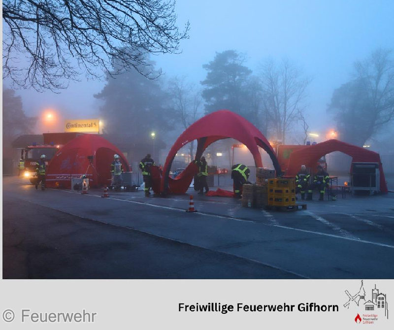 Die Firma Continental stellte für die Einsatzkräfte eine Halle zur Verpflegung und zum Aufwärmen zur Verfügung.