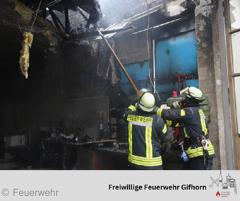 Gegen 07:30 Uhr konnte die Meldung "Feuer unter Kontrolle" gegeben werden. Im Anschluss begannen die umfangreichen Nachlöscharbeiten, die sowohl von innen als auch von außen durchgeführt wurden.