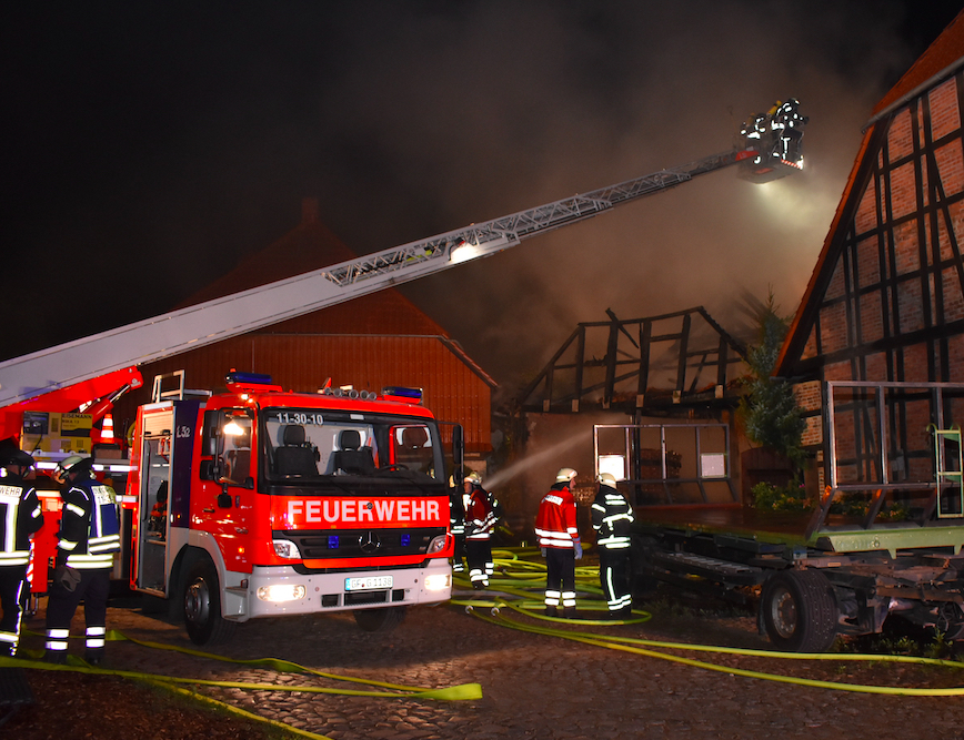 Ein Giebel von der Scheune wurde eingerissen. Die Scheune wurde mit der Wärmebildkamera kontrolliert und Glutnester abgelöscht.