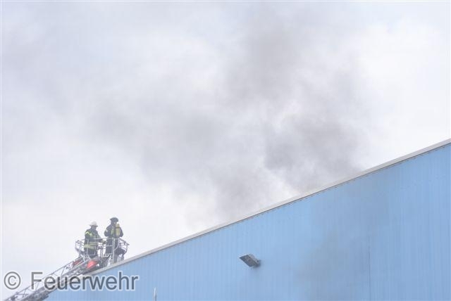 Unter der Anlage brannte ein Ölgemisch welches schnell gelöscht wurde. Mit der Wärmebildkamera wurde nach Glutnestern gesucht und Abluftöffnungen geschaffen. Die Produktionshalle wurde mit Hochleistungslüftern gelüftet.