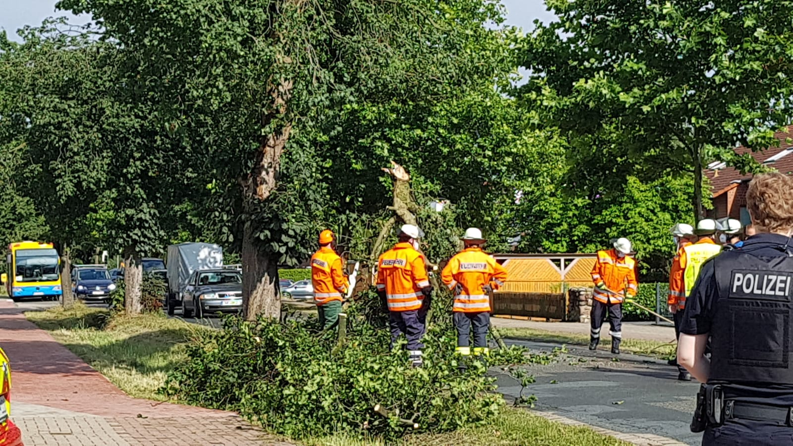 Von einem größeren Baum war ein Teil der Krone abgebrochen und lag auf der Fahrbahn.
