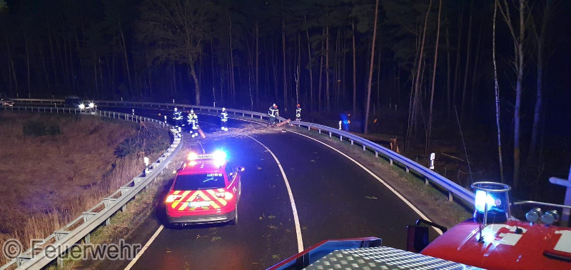 Auf der B4 lagen zwei Bäume auf der Schallschutzmauer, sowie ein Baum dierekt im Auffahrtbereich.
