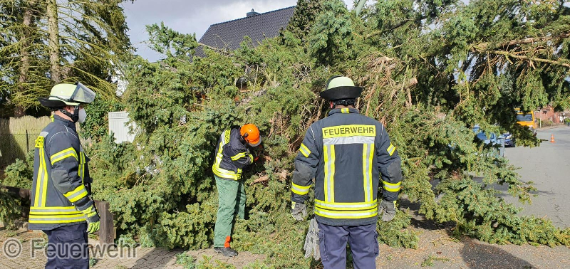 Ein bereits zum Teil entwurzelter Baum wurde gefällt, um eine Gefährdung zu verhindern.