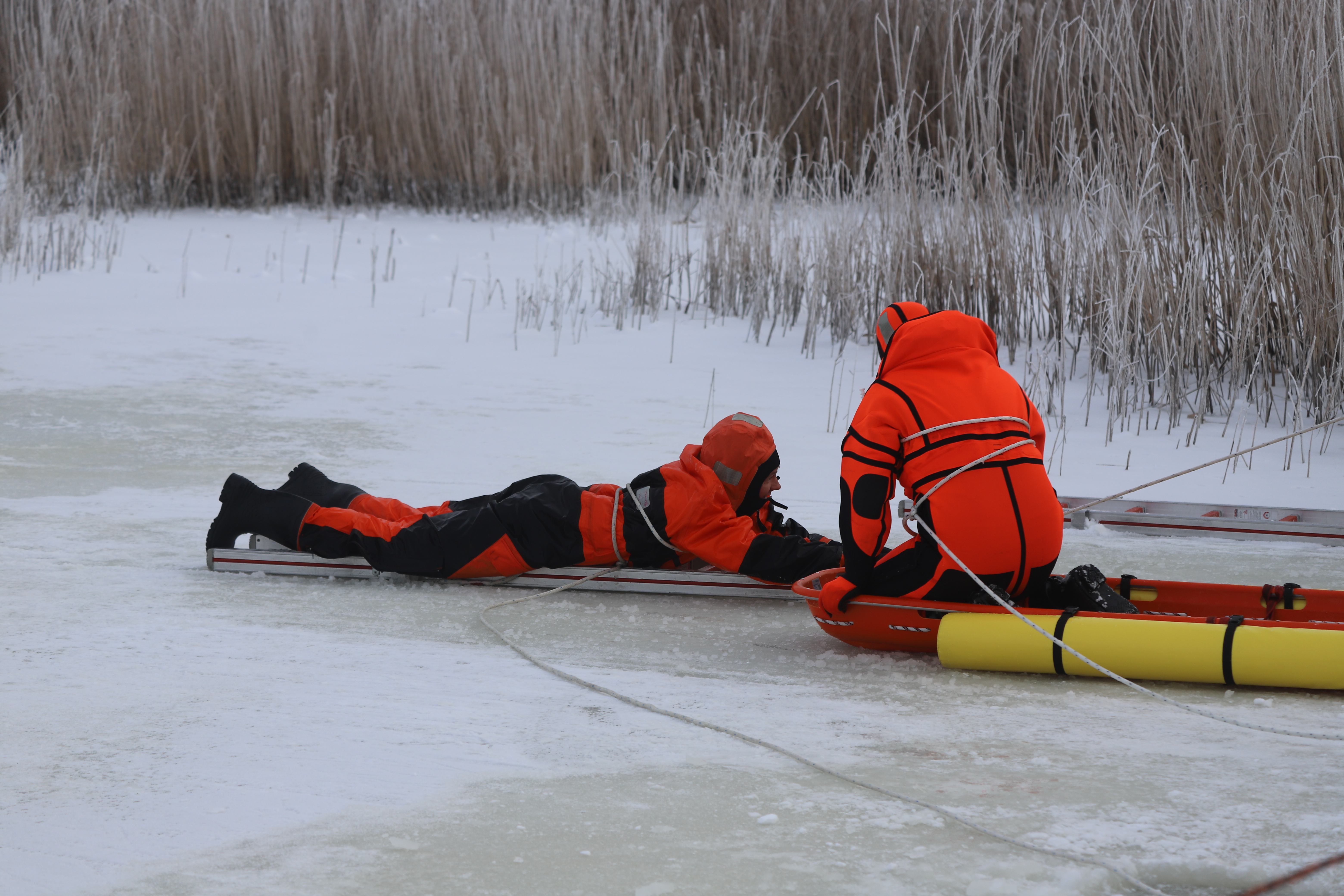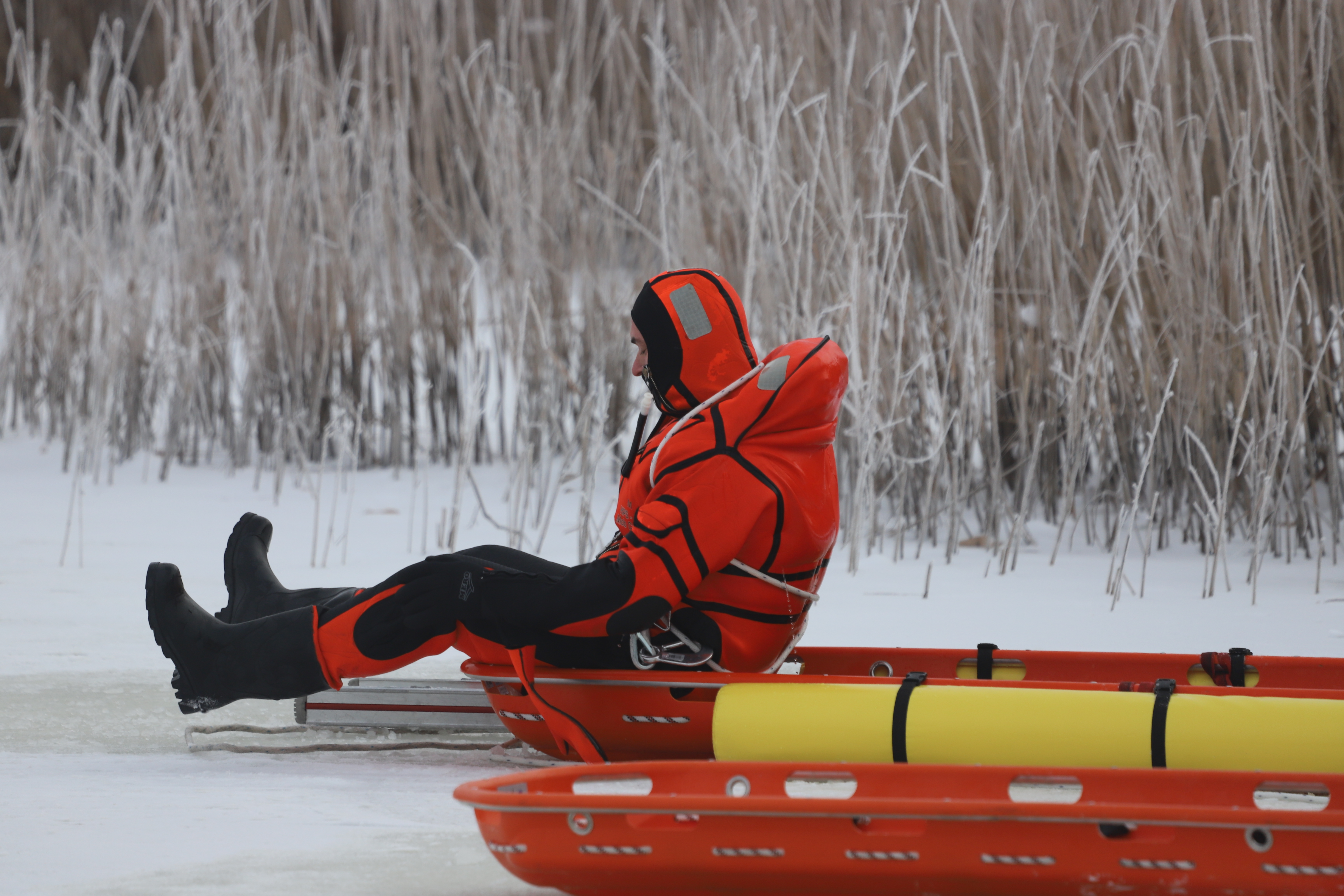 Die Sicherheit der Einsatzkräfte stand während der gesamten Ausbildung an erster Stelle. Alle Personen, die die Eisfläche betraten, waren entsprechend gesichert und trugen spezielle Überlebensanzüge, um sich vor der Kälte und einer möglichen Unterkühlung zu schützen.