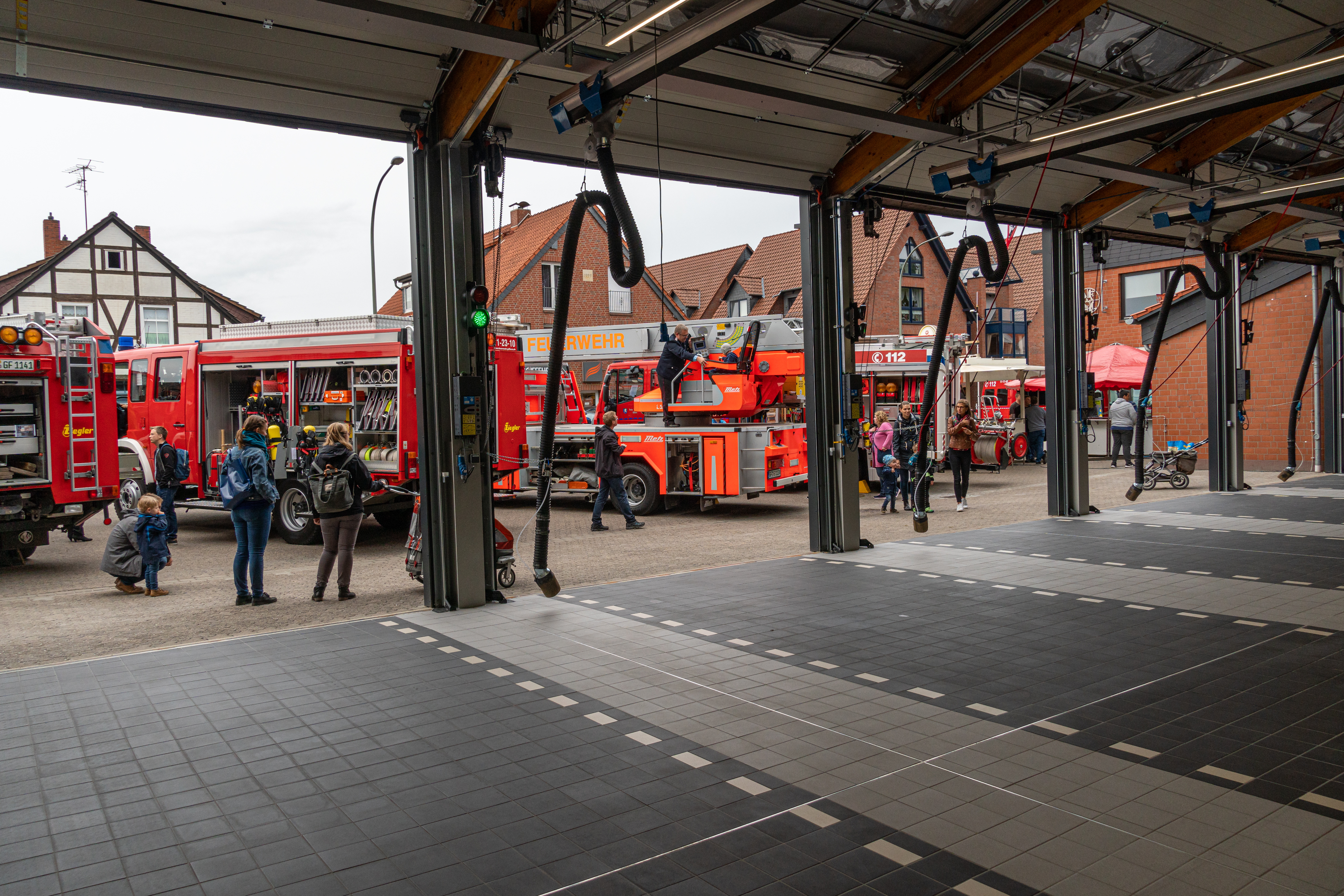Die Renovierungsarbeiten an unserer Fahrzeughalle waren glücklicherweise zum Jubiläum so weit fertiggestellt, dass auch die frisch sanierte Fahrzeughalle am Samstag, beim Tag der offenen Tür, den Bürgerinnen und Bürgern unserer Stadt präsentiert werden konnte.
