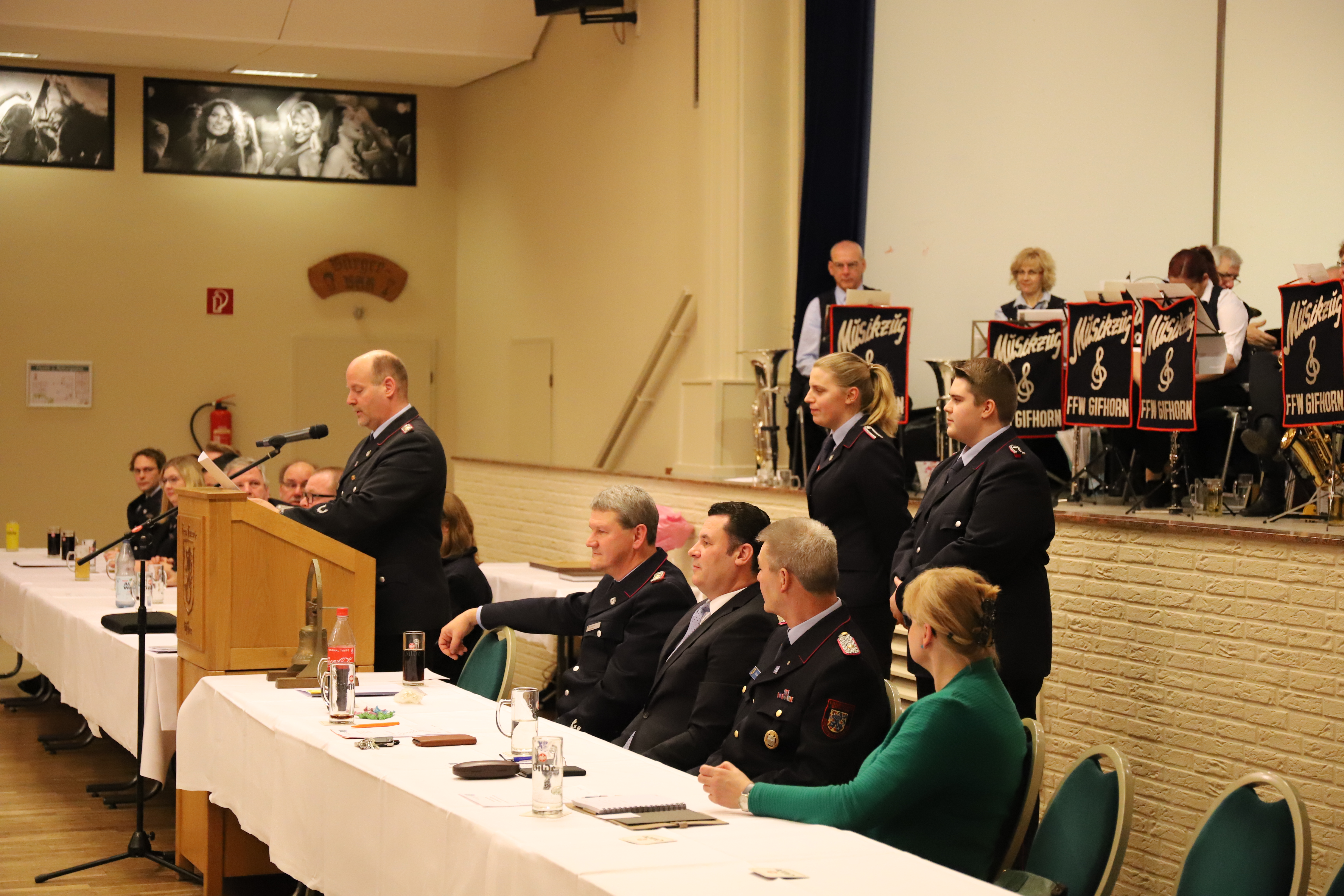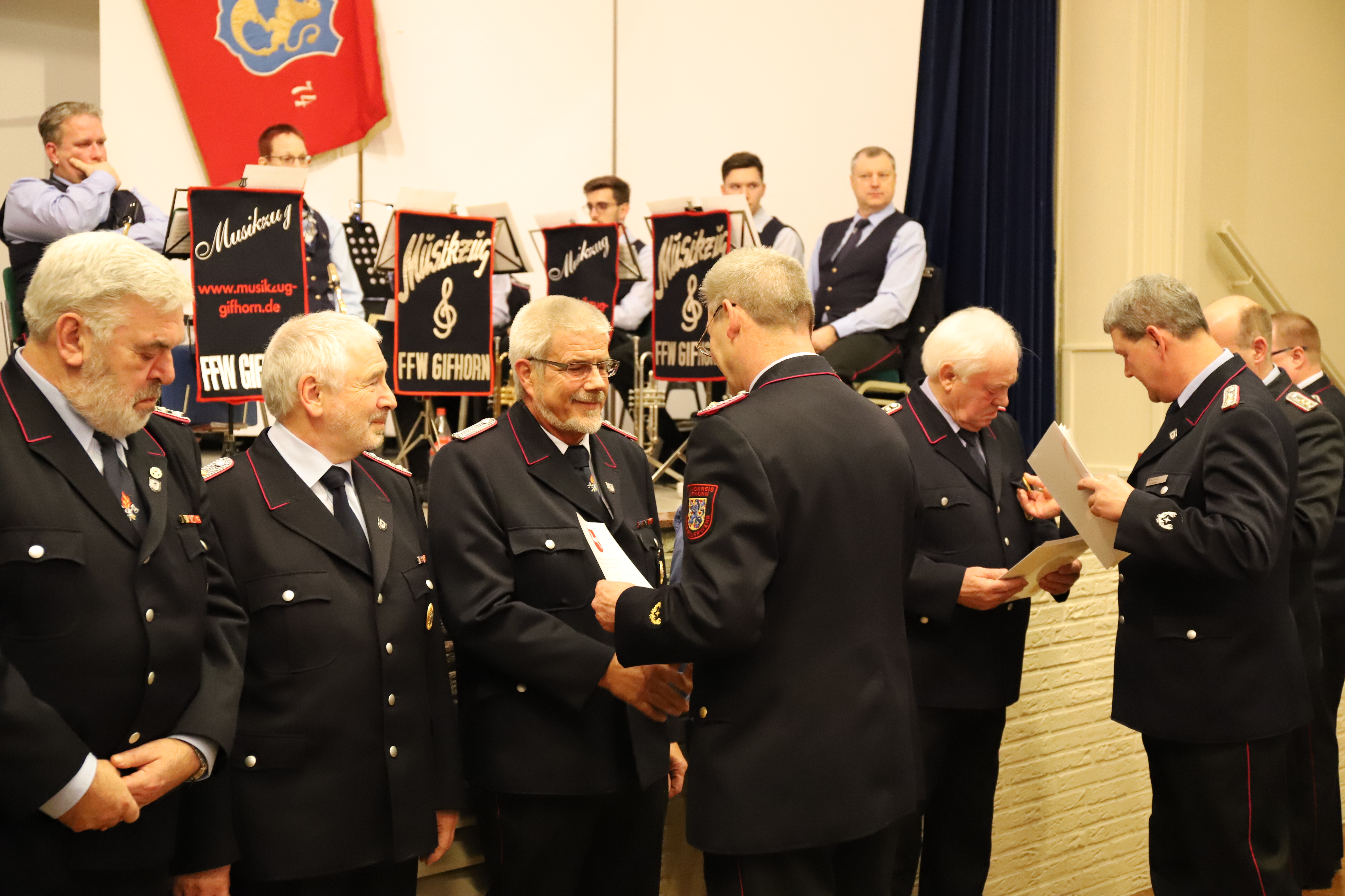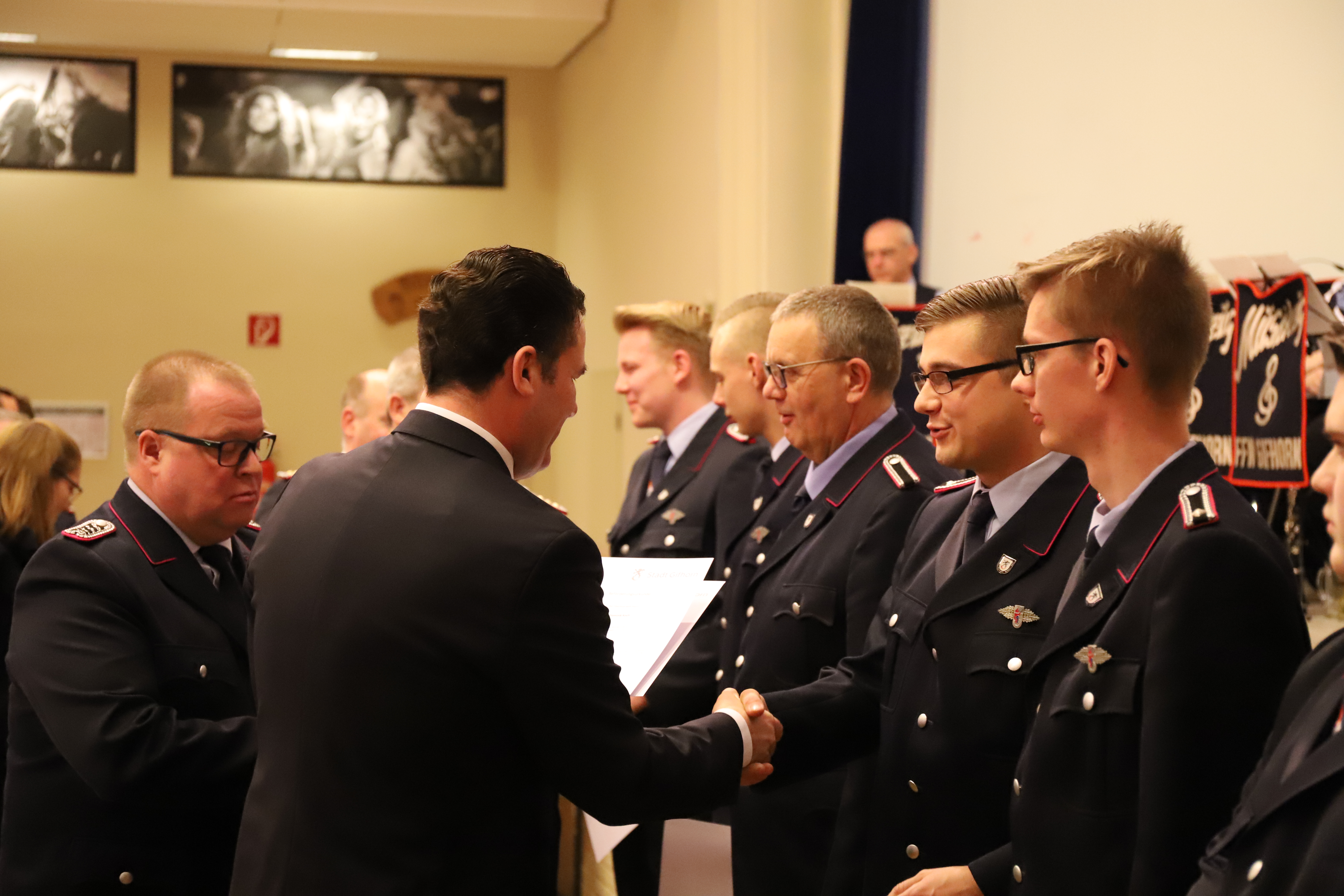 Zwei Kameraden wurden an diesem Abend endgültig als aktive Kameraden in die Freiwillige Feuerwehr Gifhorn aufgenommen, hierzu mussten sie sich vor ihren Kameraden öffentlich Verpflichten.